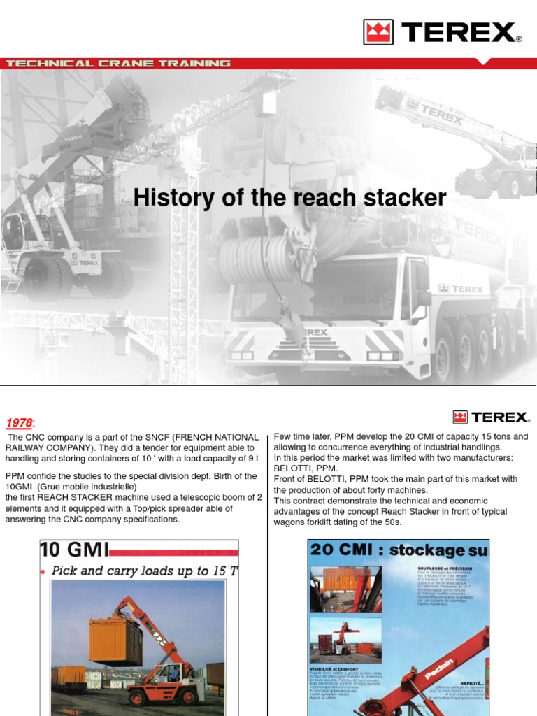 Terex offered a complete range of full and empty container handling reach stackers plus a dedicated multiattachment version. Terex corporation is an american worldwide manufacturer of lifting and material handling solutions for a variety of industries including construction infrastructure quarrying recycling energy mining shipping transportation refining and utilities. When you need replacement parts for your terex or legacy brand cranes go with terex cranes original parts. Terex acquires ppm which stands for potain poclain manutention in 1995 and operates as terex ppm in 2004 when terex ppm becomes terex cranes france.
