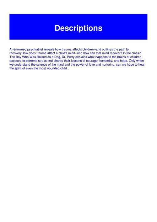 Perry download you can read below technical ebook details. Free download or read online the boy who was raised as a dog. The boy who was raised as a dog. Perry tells their stories of trauma and transformation through the lens of science revealing the brains astonishing capacity for healingdeftly combining unforgettable case histories with his own compassionate insightful strategies for rehabilitation perry explains what exactly happens to the brain when a child is exposed to extreme stress and.