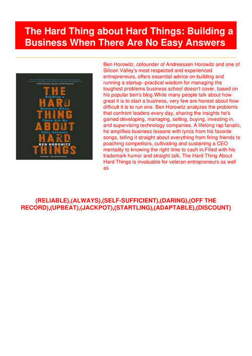 Get Pdf The Hard Thing About Hard Things Building A Business