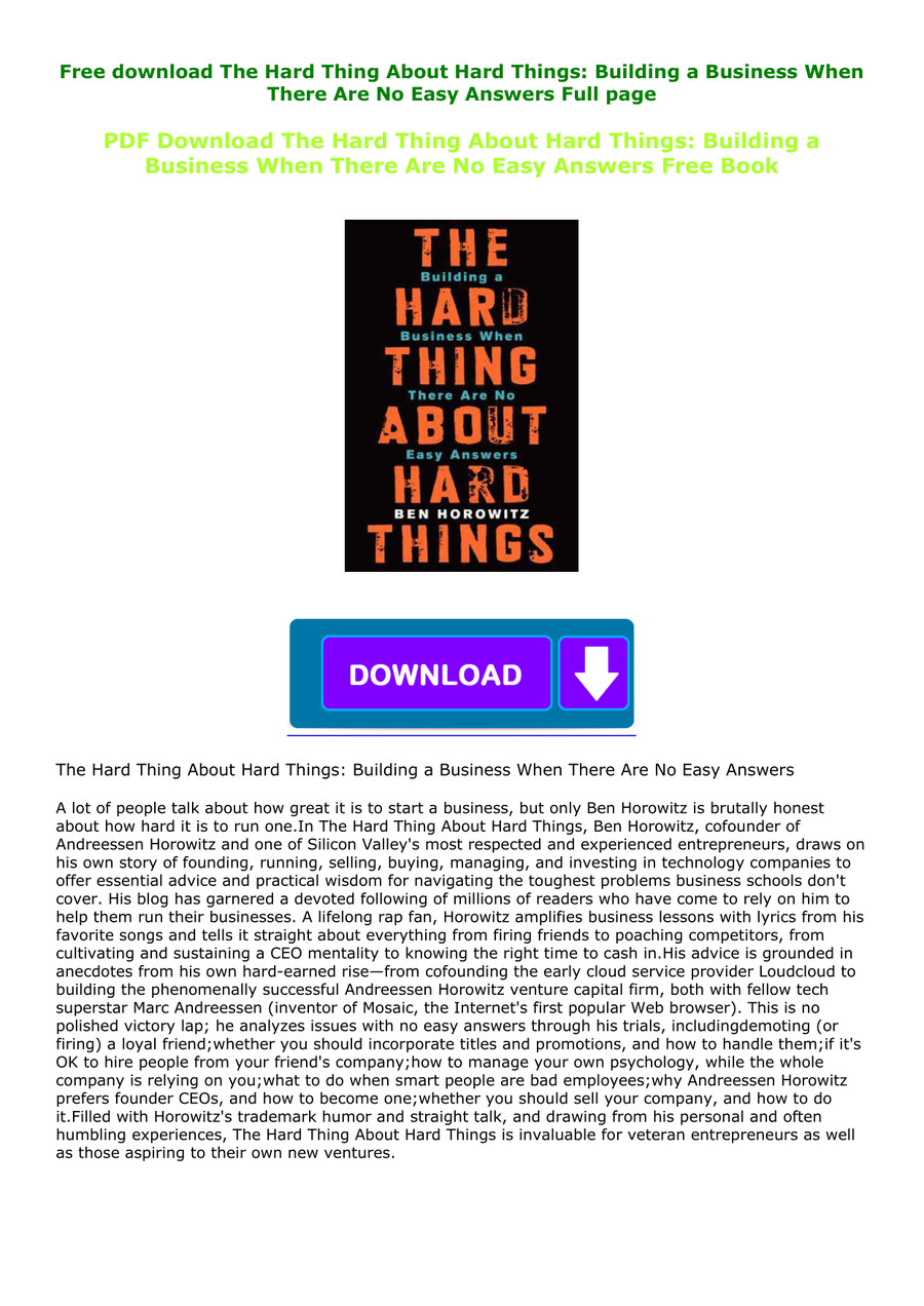 Pdf The Hard Thing About Hard Things Building A Business When