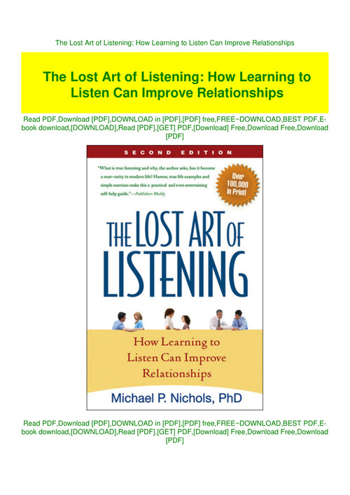 The lost art of listening second edition. The lost art of listening second edition. Nichols worth to be reread a couple of times balances between scientific approach day to day examples and prescription for treatment. The lost art of listening is a pleasure to read and a valuable tool for therapists marion f.