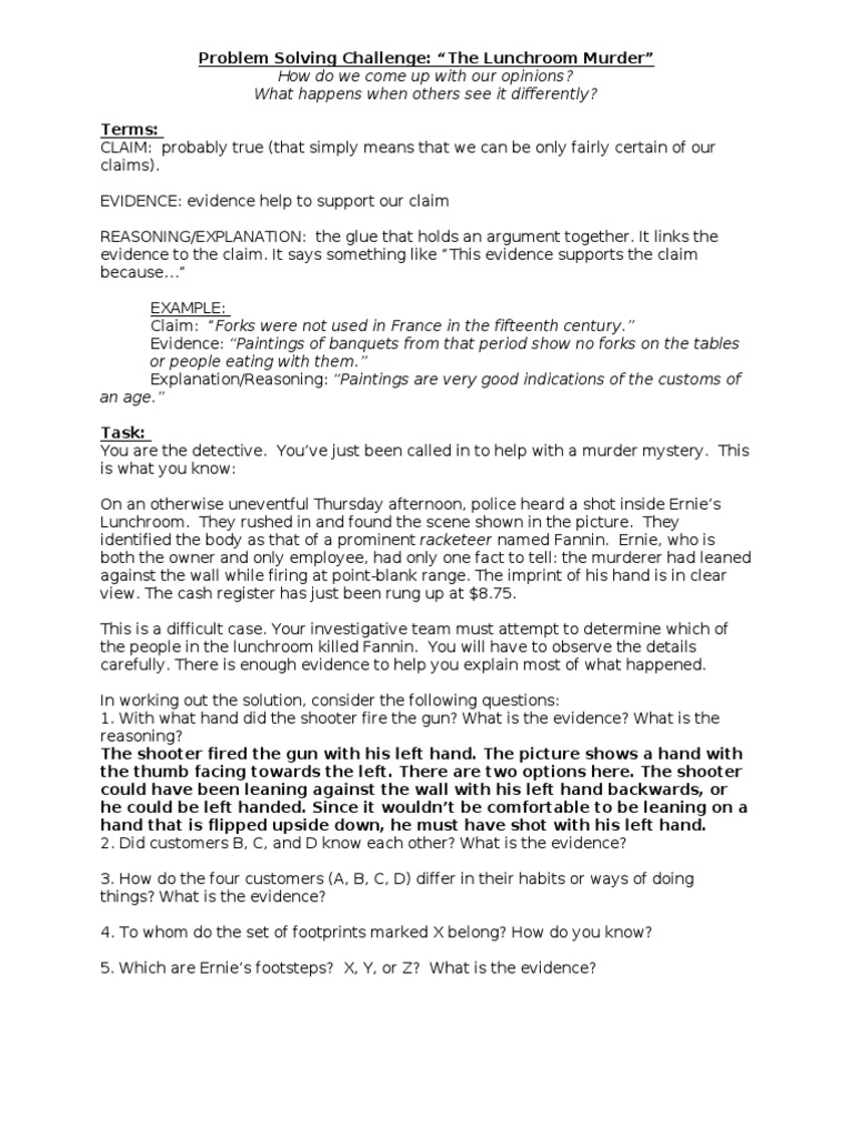 The Lunchroom Murder Claim Docx The Lunchroom Murder The Killer