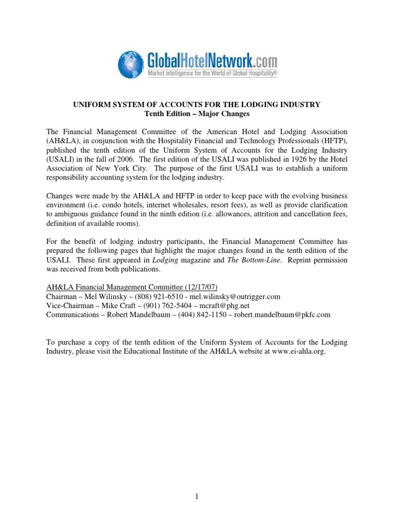 Uniform System Of Accounts For The Lodging Industry Ppt Download